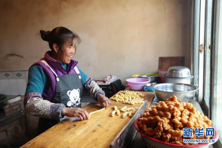 2月6日,元古堆村村民陈金娥在家中制作麻花。新华社记者 马希平 摄