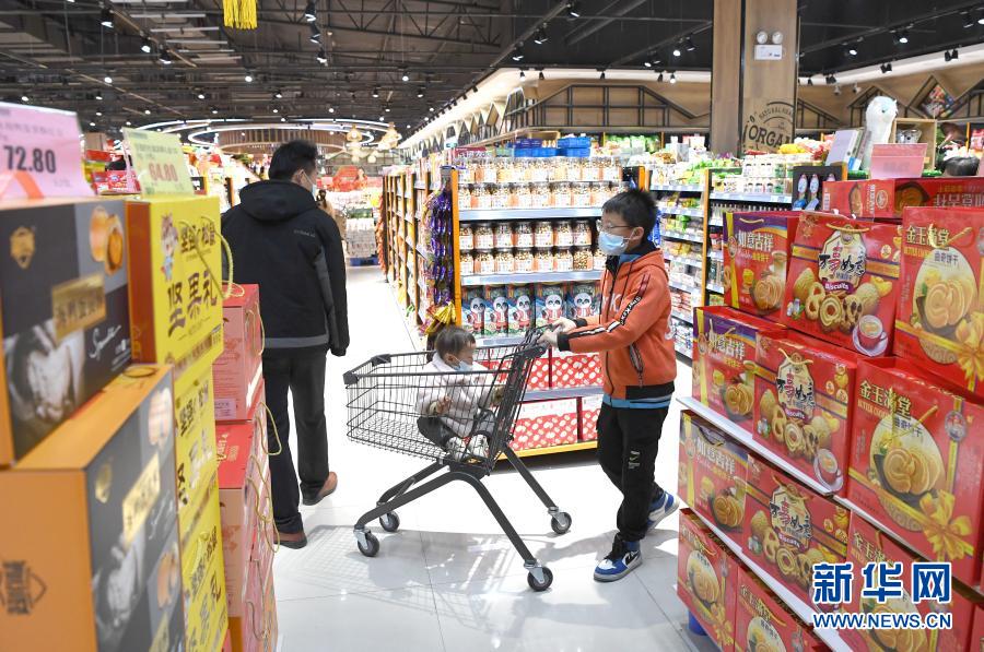 韦寒贵一家在大化瑶族自治县县城采购年货(2月3日摄)。