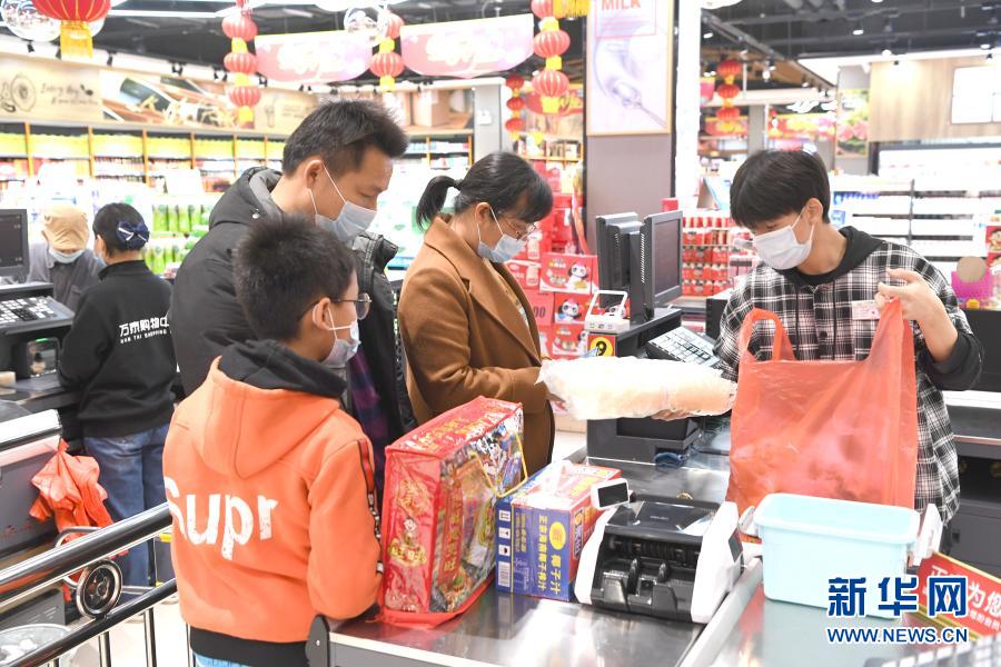 韦寒贵一家在大化瑶族自治县县城采购年货(2月3日摄)。