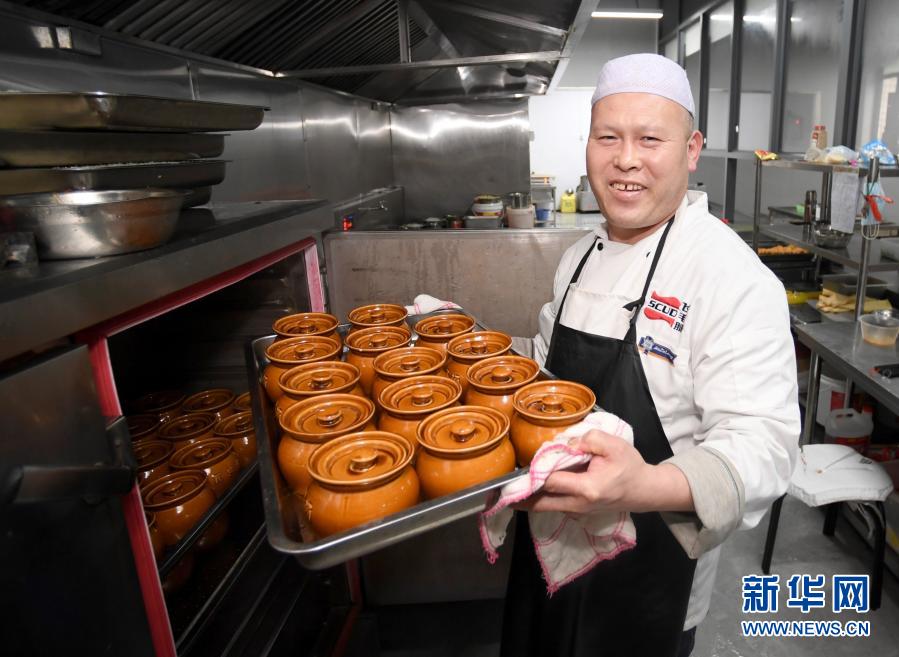 2月11日,飞毛腿(福建)电子有限公司食堂厨师在为留厂过年的员工准备年夜饭。新华社记者 姜克红 摄