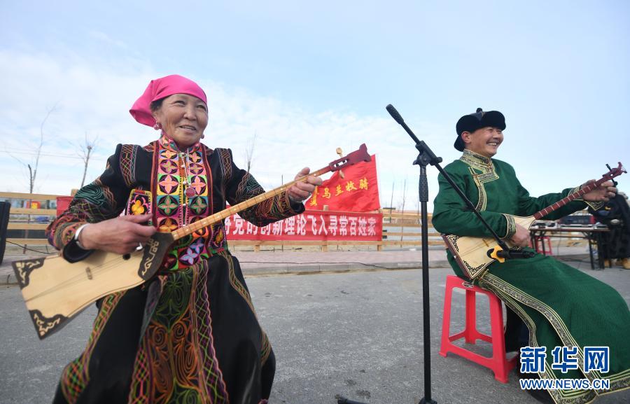 农历除夕当天,新疆和布克赛尔蒙古自治县的乌兰牧骑来到铁布肯乌散乡查干阿德尔格村,为村民送上《我们的中国梦·文化进万家》春节七天乐系列文化下乡文艺演出。
