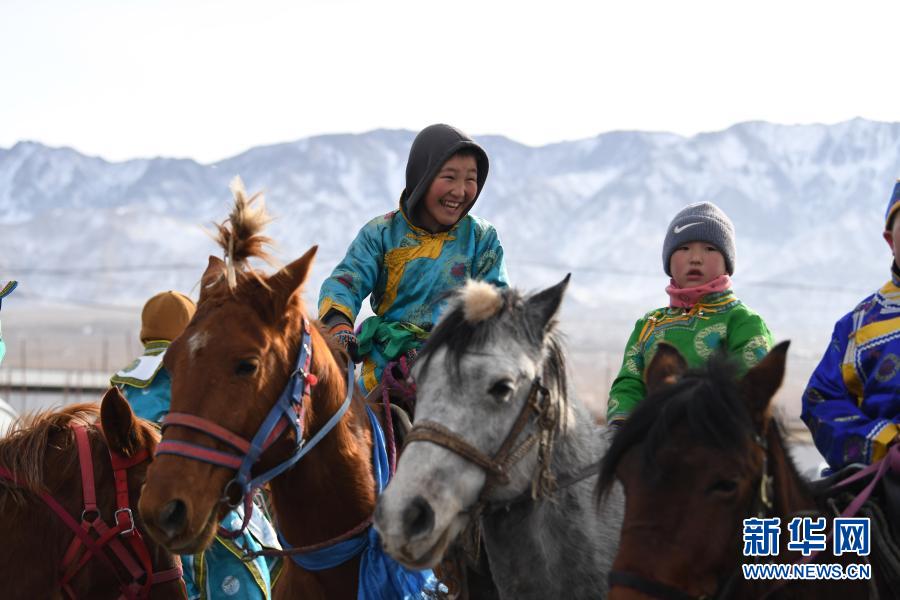 2月11日,身着节日盛装的孩子们在观看乌兰牧骑演出。