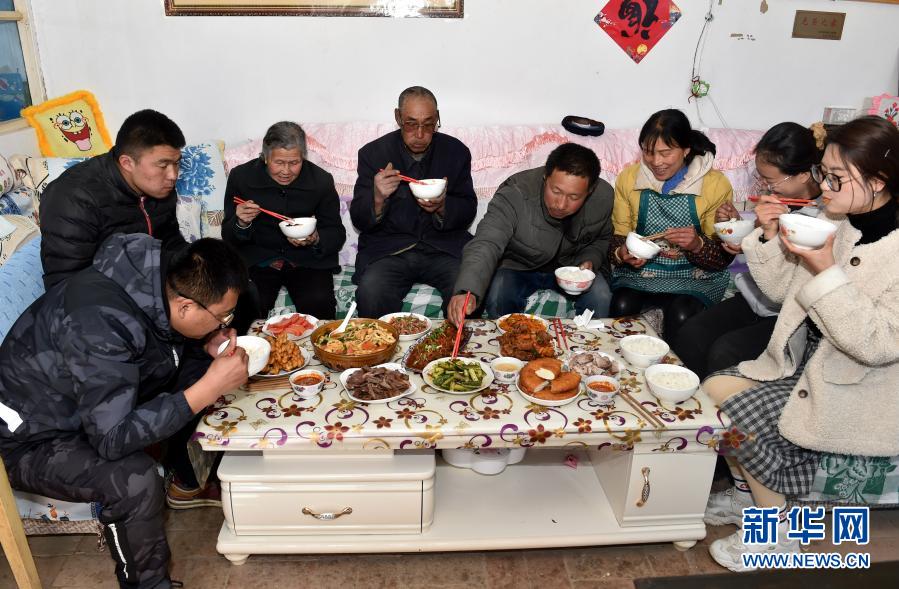 46岁的脱贫户黄登明家住宁夏固原市原州区河川乡黄河村,除夕这天,一家人欢聚一堂,迎接牛年的到来。