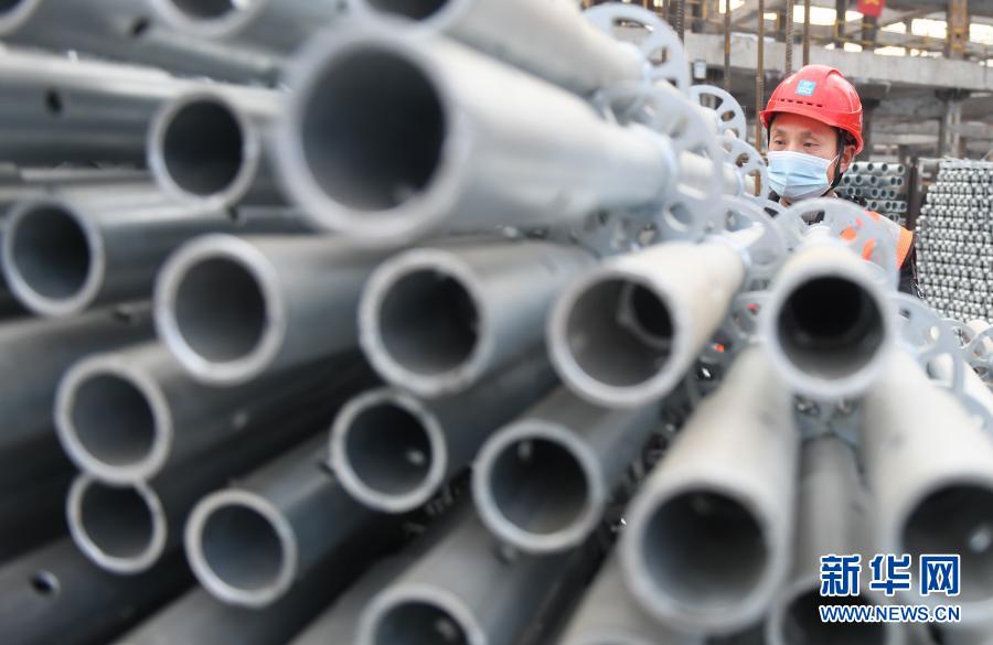 中建三局总承包公司工人李平在武汉长江中心项目工地工作(2月11日摄)。新华社记者 程敏 摄
