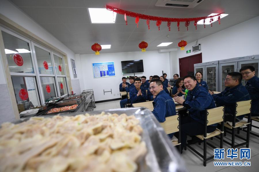 2月11日,在锡盟换流站的食堂,职工们欢聚一堂准备吃过年水饺。