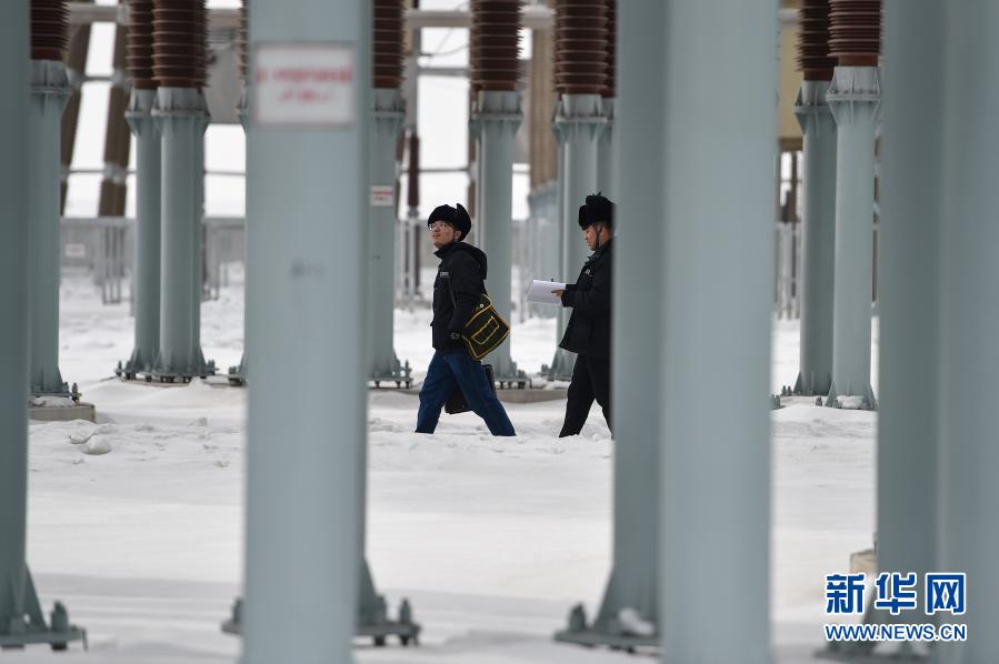 2月11日,在锡盟换流站内,工作人员在巡检设备。