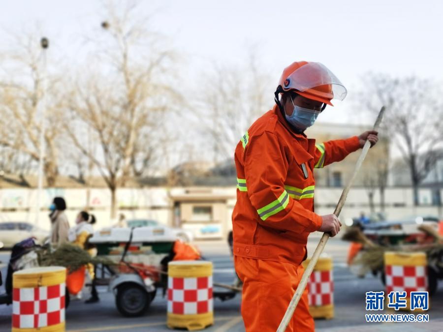2月5日,天津市南开区环境卫生管理三所的环卫工人杨国旗在清扫街道。新华社记者 刘惟真 摄