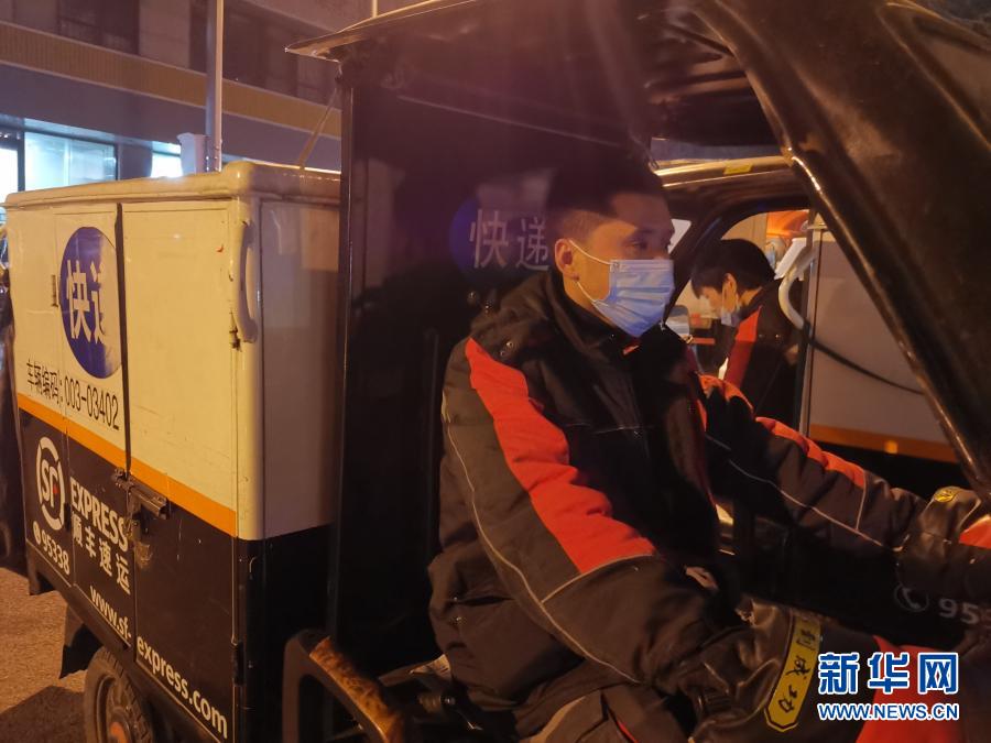 2月8日,在北京市西城区,31岁的快递员刘阔在忙着送货。新华社记者 陈旭 摄