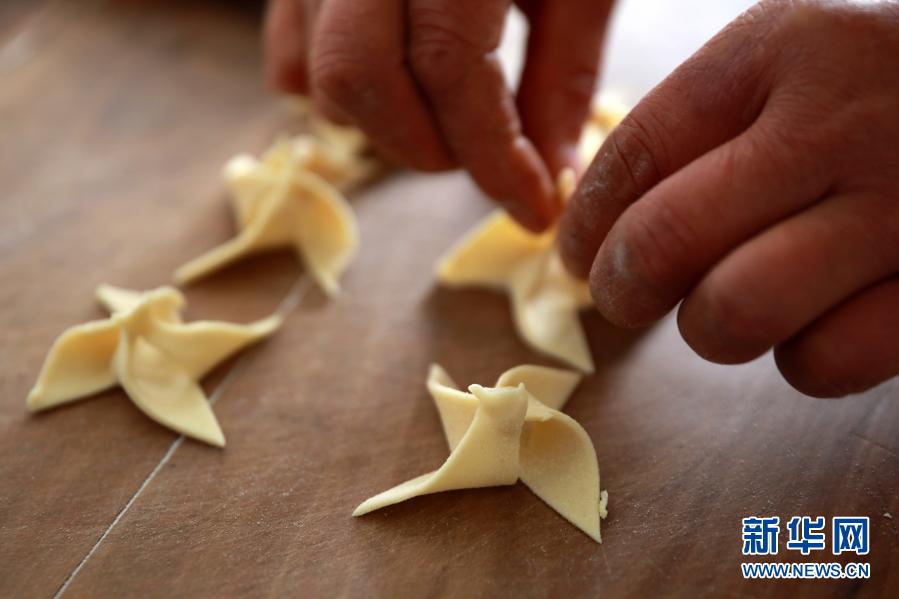 妻子李海玲在家中制作面点(2月4日摄)。新华社记者 杜哲宇 摄