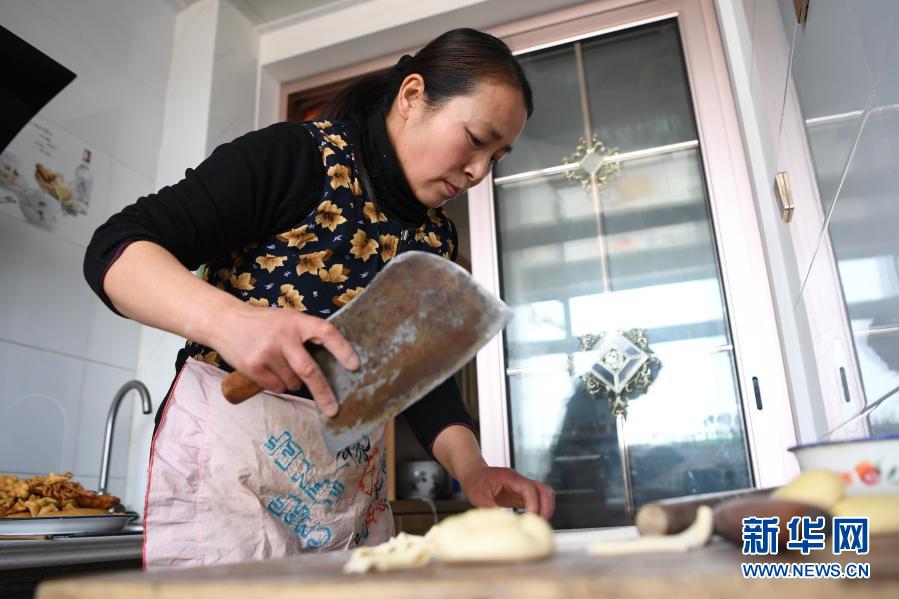 妻子李海玲在家中制作面点(2月4日摄)。新华社记者 陈斌 摄