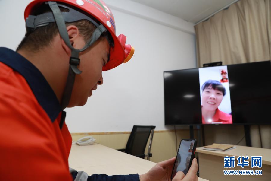 2月11日,金川集团三矿区采矿二工区工人辛超下井前和母亲视频拜年。当日是除夕,因为井下无信号,企业特意安排工人下井前向亲人拜年送祝福。
