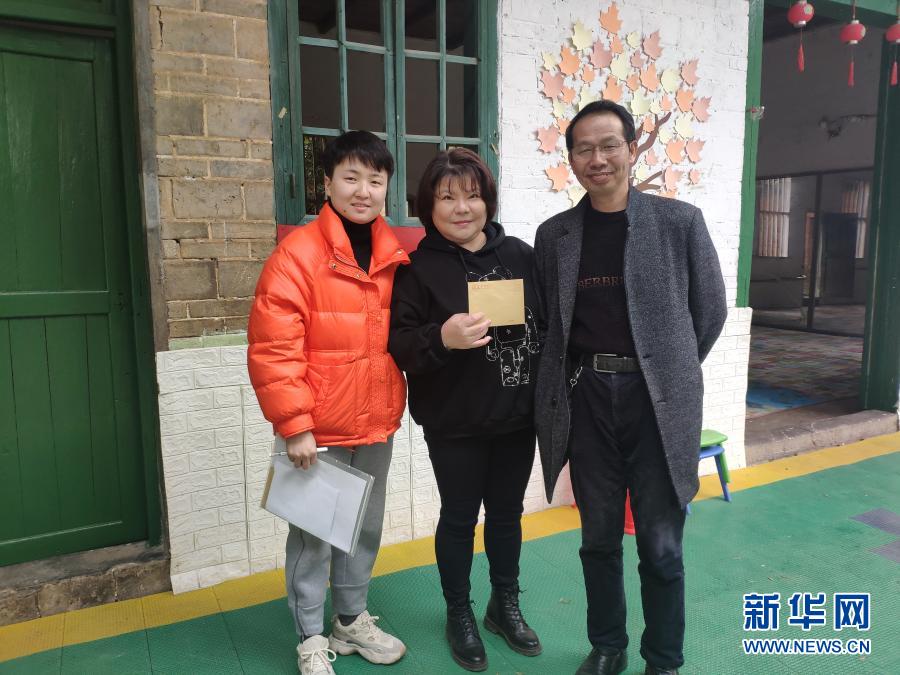 1月26日,湖南省蓝山县有关部门工作人员到湘威人文实验学校看望李视芳(中)。新华社发