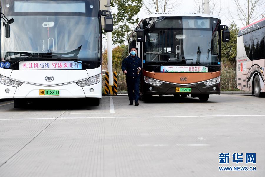 2月11日,夏登雷驾驶公交车到达省行政中心公交站房后下车休息。新华社记者 黄博涵 摄