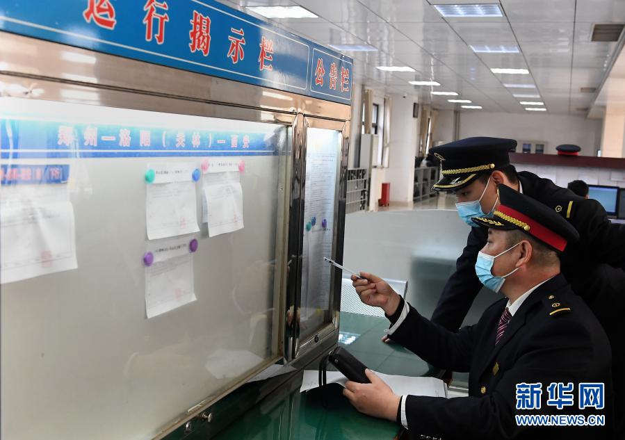 郭洪涛(前)与郭宇朔对运行揭示信息进行逐一核对(2月11日摄)。