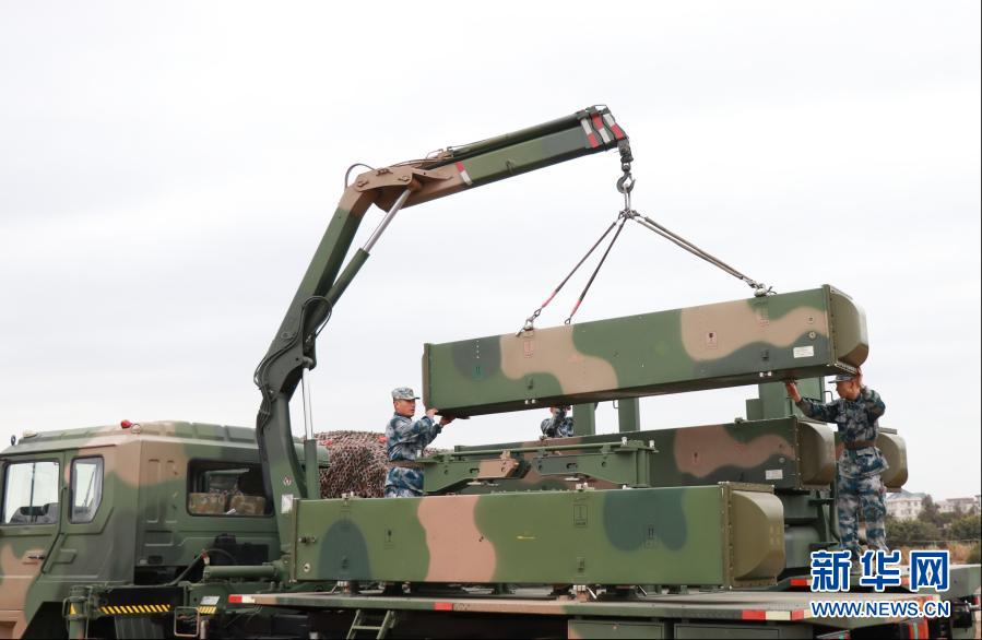2月9日,执行野营驻训任务的北部战区空军地导某旅官兵组织导弹吊装训练。