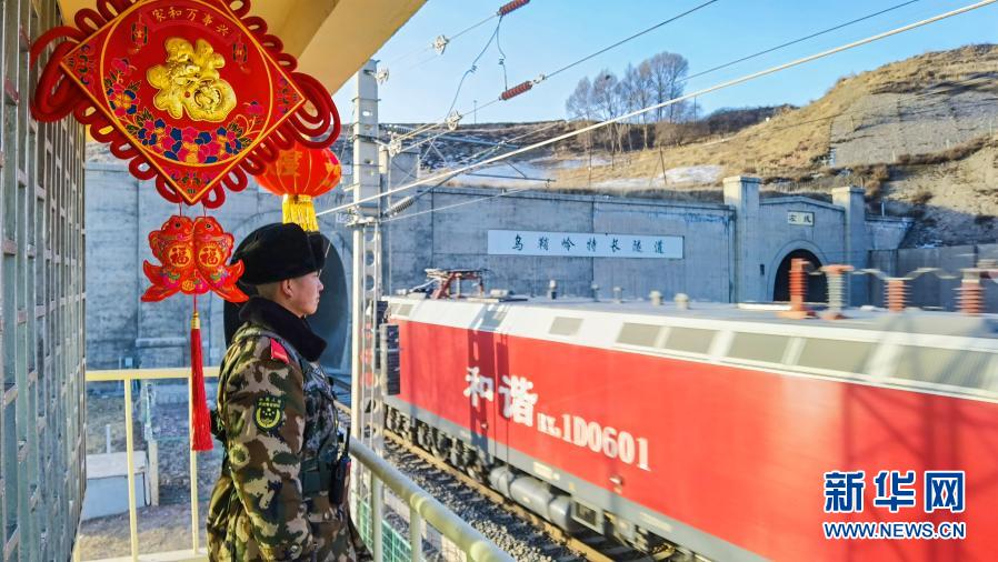 2月12日,武警甘肃总队武威支队执勤三中队官兵在兰新铁路乌鞘岭特长隧道哨位执勤。