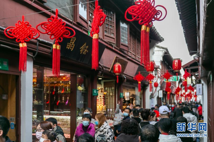 2月12日,人们在上海七宝古镇游玩。新华社记者 王翔 摄