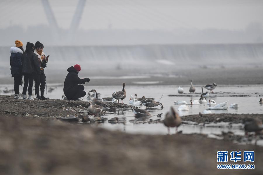 2月12日,市民在沈阳市浑河鸟岛附近观鸟。新华社记者 潘昱龙 摄