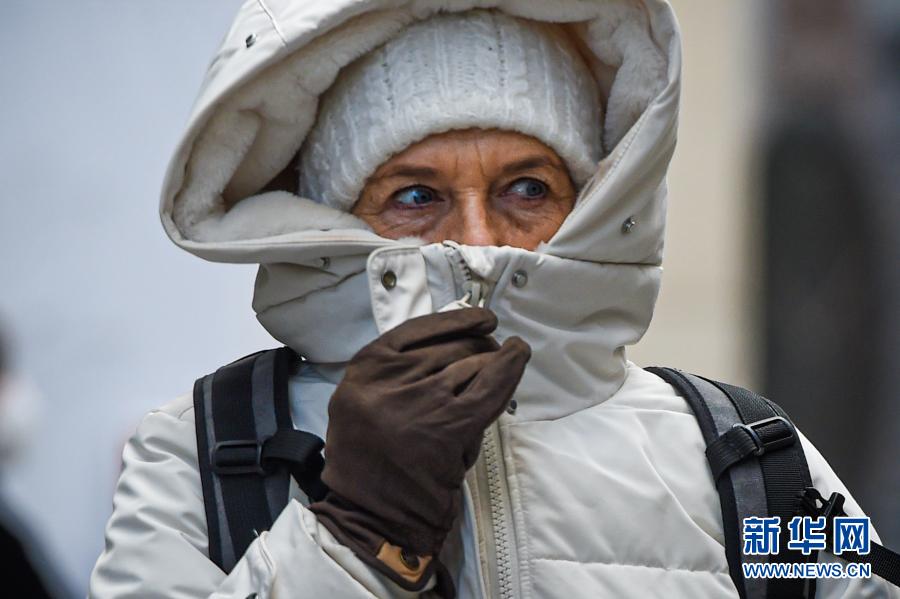 2月12日,一名行人裹紧外套走在奥地利维也纳街头。