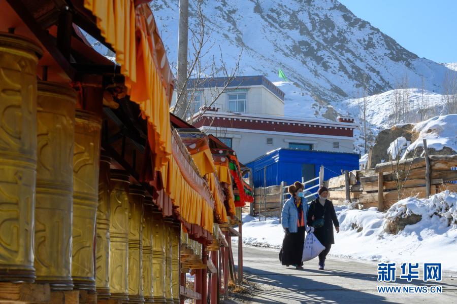 2月12日,在西藏自治区山南市乃东区泽当镇,格央(左)和家人一起,在藏历新年第一天转山祈福。