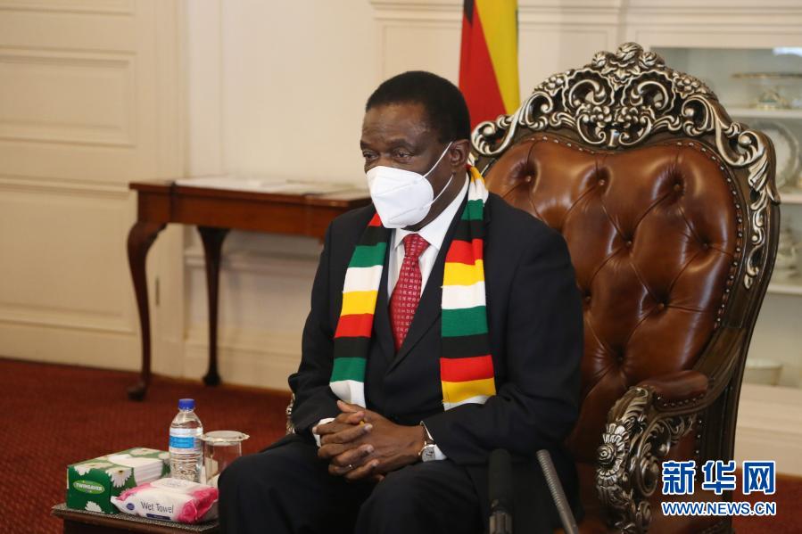2月12日,津巴布韦总统姆南加古瓦在首都哈拉雷的总统府接受新华社记者采访。新华社记者张玉亮摄