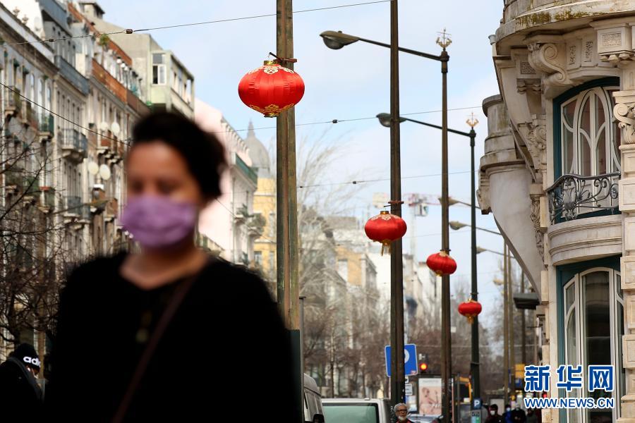 2月12日,葡萄牙首都里斯本的街头挂起中国红灯笼,庆祝中国农历新年。新华社发(佩德罗·菲乌萨摄)