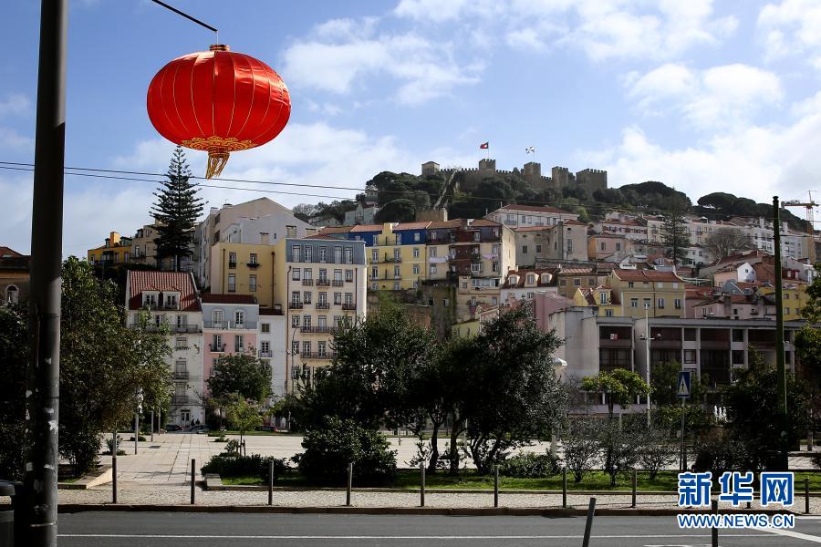 2月12日,葡萄牙首都里斯本的街头挂起中国红灯笼,庆祝中国农历新年。新华社发(佩德罗·菲乌萨摄)