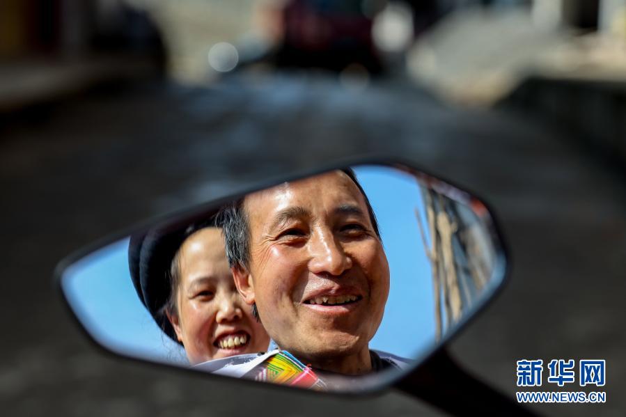 2月10日,苗族村民马雍载着妻子黄国琴去镇上购买年货。新华社记者 欧东衢 摄