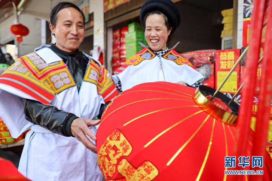 2月10日,苗族村民马雍与妻子黄国琴在镇上购买年货。新华社记者 欧东衢 摄