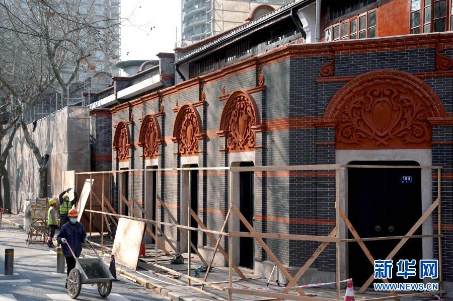 这是正在修缮中的中共一大会址(2月4日摄)。新华社记者 刘颖 摄