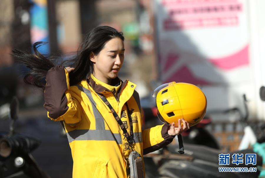 2月10日 ,美团专送骑手小月月送餐结束回到配送站点。新华社记者 杨青摄