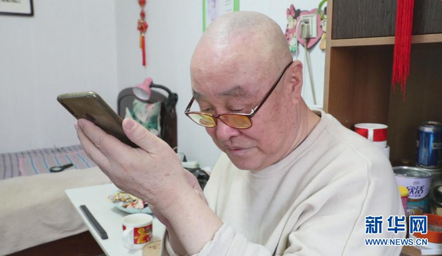 2月10日,在沈阳市沈河区多福社区,78岁的独居老人郭东辉和在外地的女儿视频通话。新华社记者 赵泳摄