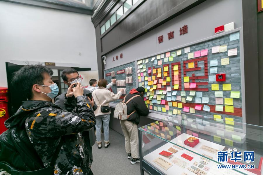 2月13日,人们在中国社会主义青年团中央机关旧址纪念馆留言墙写下祝福便签。