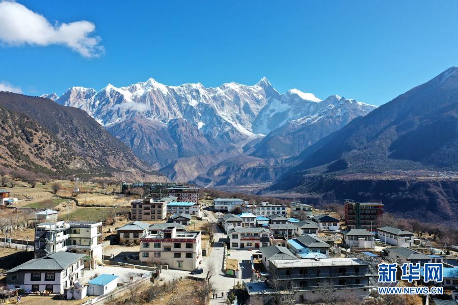 这是西藏林芝市米林县派镇索松村一角(无人机照片,1月28日摄)。新华社记者 詹彦 摄