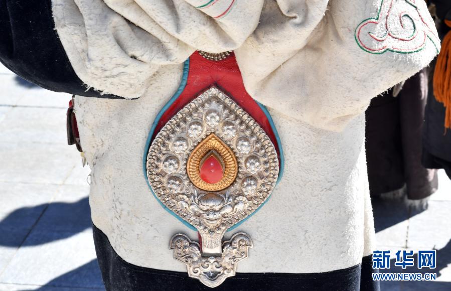 藏北当雄县一名牧区男子佩戴的银饰(2月12日摄)。