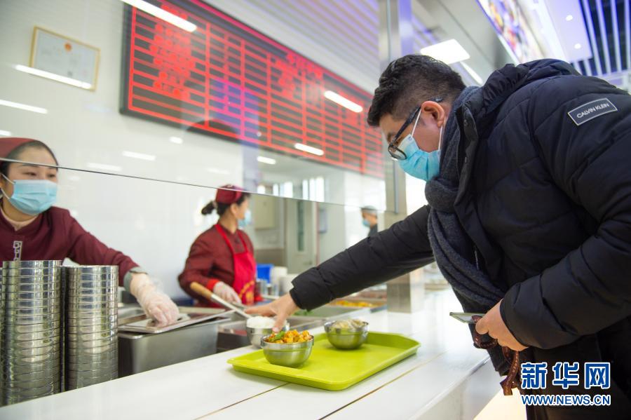 索鎏敏在怀柔科学城中国科学院物理所怀柔园区食堂打饭(2月3日摄)。新华社记者 陈钟昊 摄