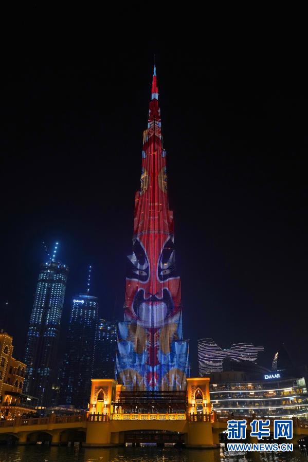 2月12日,位于阿联酋迪拜的世界第一高楼哈利法塔上演春节灯光秀,庆祝中国农历新年的到来。