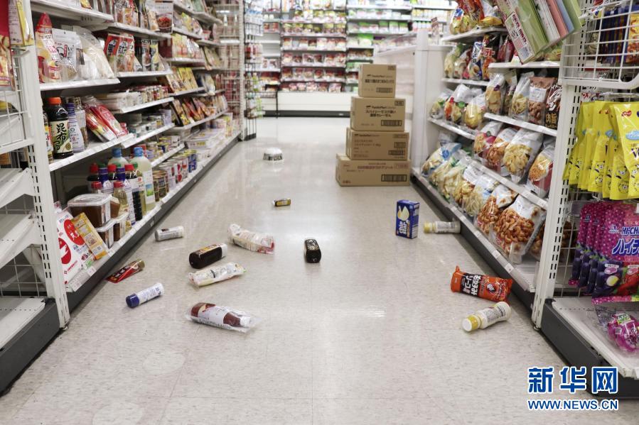 2月13日,日本宫城县仙台市一间商店中的商品受地震影响掉落。