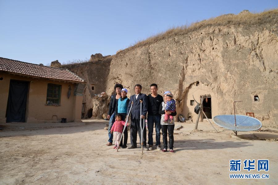张俊明(中)一家人在固原市彭阳县红白阳镇自家的院子里合影(2013年6月15日摄)。新华社记者 王鹏 摄