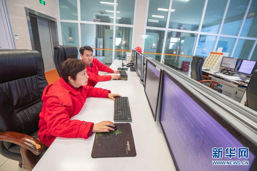 2月13日,在中国石油西南油气田公司相国寺储气库,陈彪(后)、范琴完成巡检任务后回到监控室对设备进行远程监控。