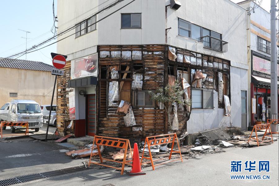 这是2月14日在日本福岛县相马市拍摄的一处因地震导致外墙脱落的房屋。