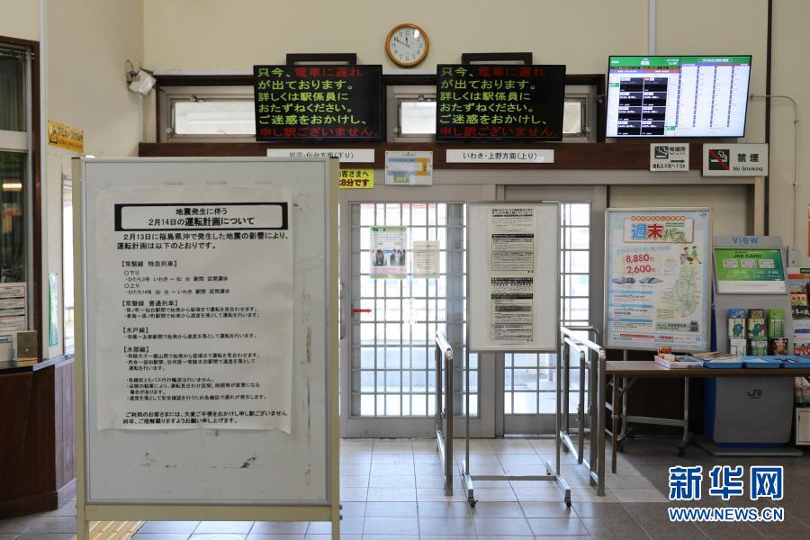 2月14日,在日本福岛县相马市,相马车站没有乘客,列车暂停运行。