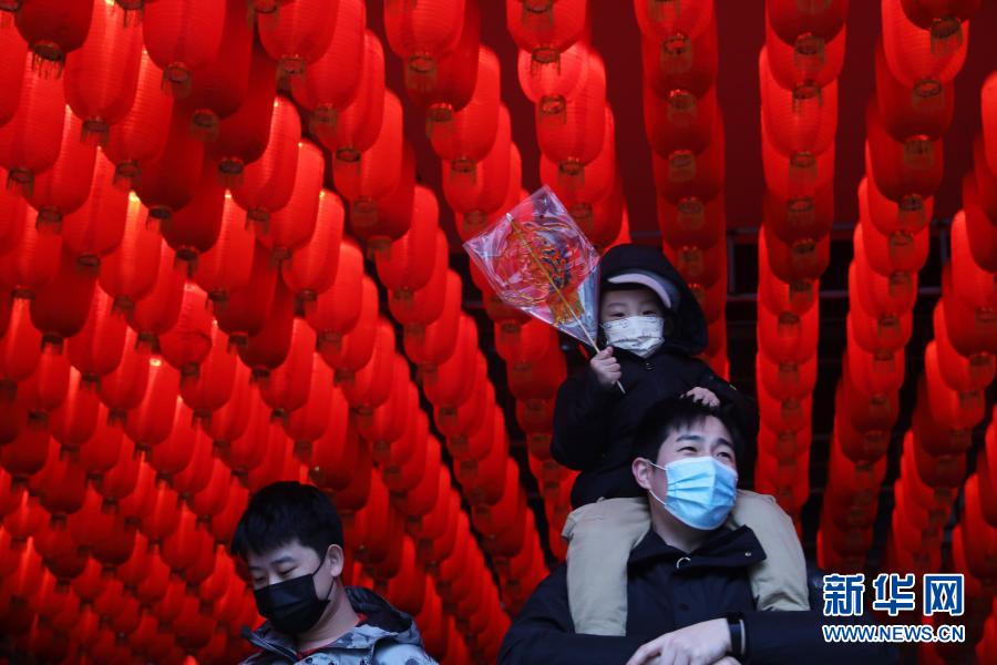 2月14日,人们在沈阳市和平区老北市特色风情街游玩。