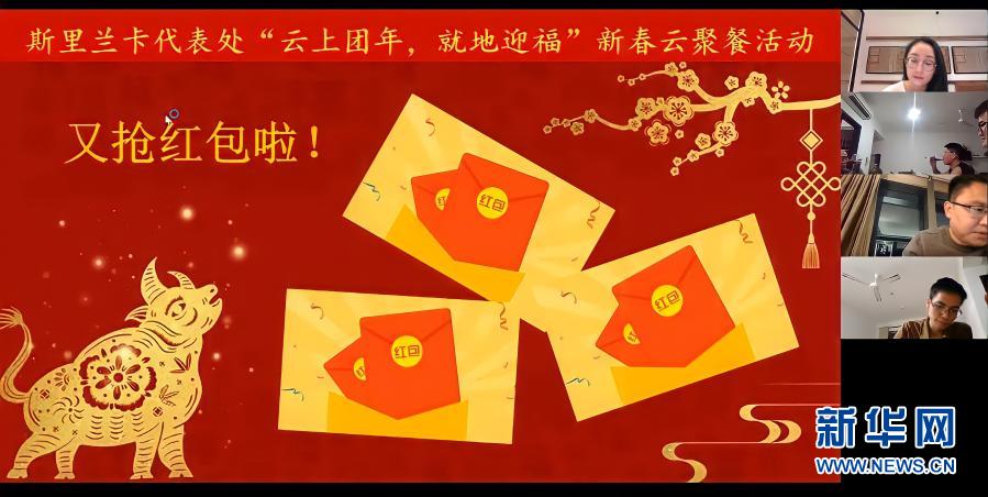 2月11日,华为技术斯里兰卡有限责任公司在斯里兰卡科伦坡举行除夕夜“云聚餐”。新华社发(华为技术斯里兰卡有限责任公司供图)