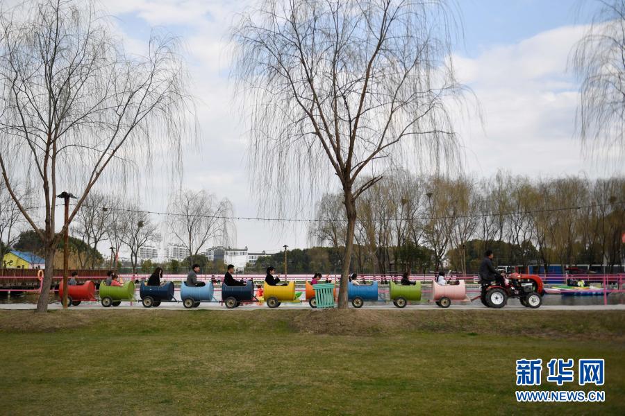 2月14日,游客在练市镇“莫奈庄园”体验“动力小火车”。新华社记者 黄宗治 摄
