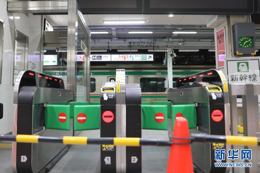 2月14日,在日本福岛县福岛市,福岛车站内列车停运,站台闸机封闭。新华社记者 杜潇逸 摄
