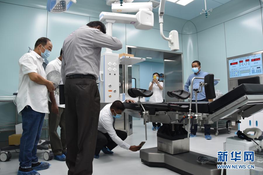 2月11日,斯里兰卡卫生部派遣的专家在波隆纳鲁沃的中国援建斯里兰卡国家肾病医院进行验收。新华社发(华山国际工程公司供图)