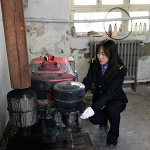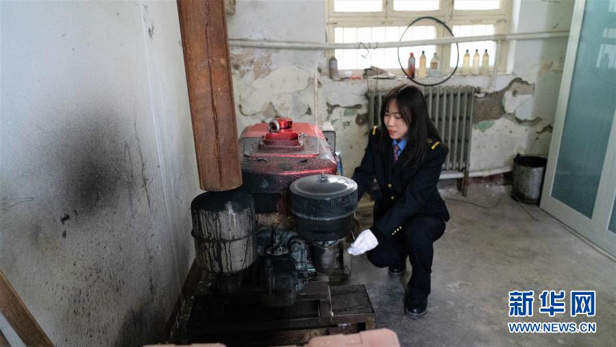 孙家寨站车站值班员李二鑫在使用发电机(2月10日摄)。新华社记者 严赋憬 摄