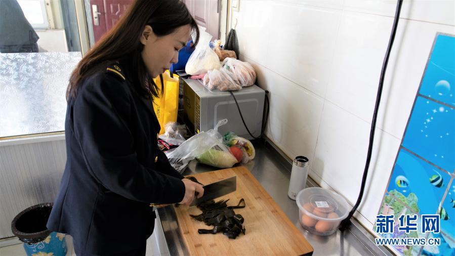 孙家寨站车站值班员李二鑫为大家准备午餐(2月10日摄)。新华社记者 严赋憬 摄