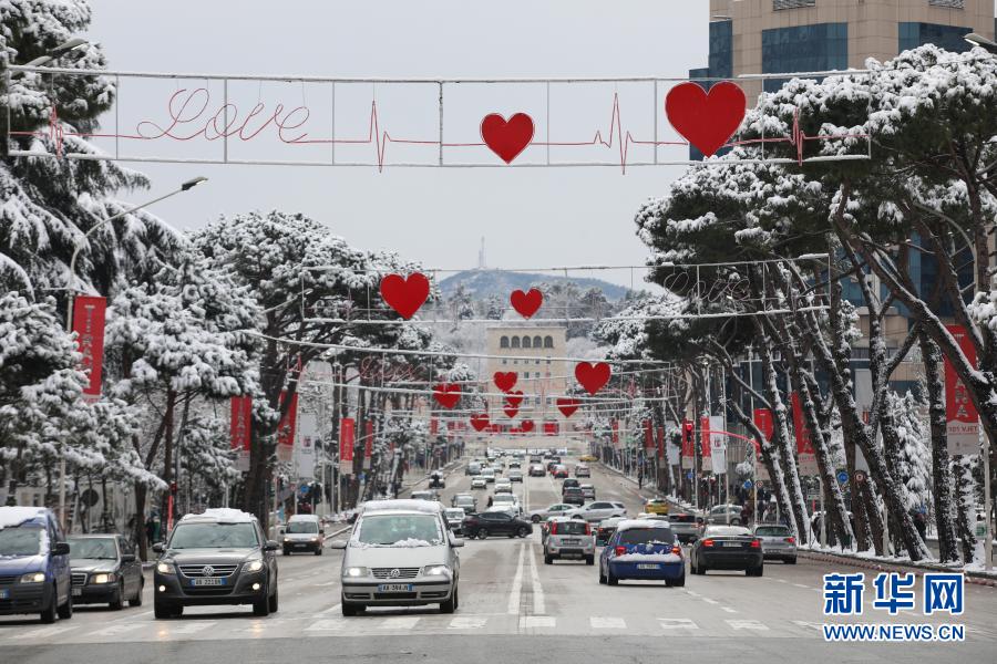 这是2月14日在阿尔巴尼亚首都地拉那拍摄的雪景。地拉那13日夜间迎来降雪。新华社发(根特·奥努齐摄)